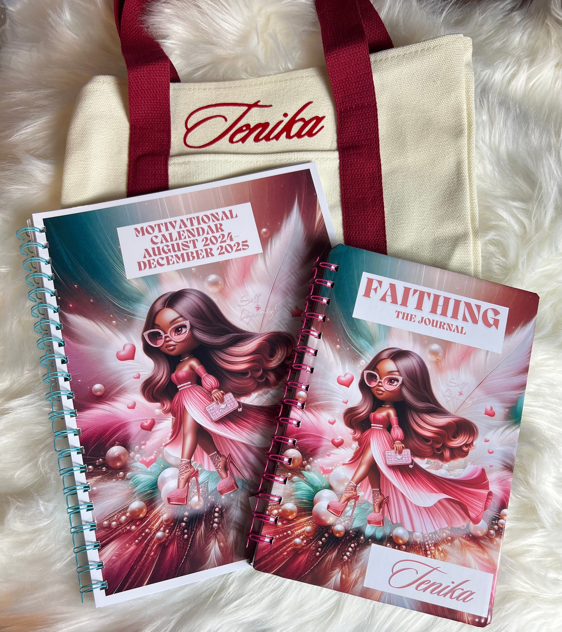 Stay stylishly organized with the KUTIE Carry-All Kit, the ultimate 3-in-1 bundle for busy women, students, and professionals. This chic set includes a spacious tote bag, a customizable journal, and a matching calendar/planner—perfect for carrying your essentials, writing your thoughts, and planning your schedule in style. Whether you’re heading to work, school, meetings, or weekend errands, the KUTIE Carry-All Kit keeps you cute, coordinated, and in control.